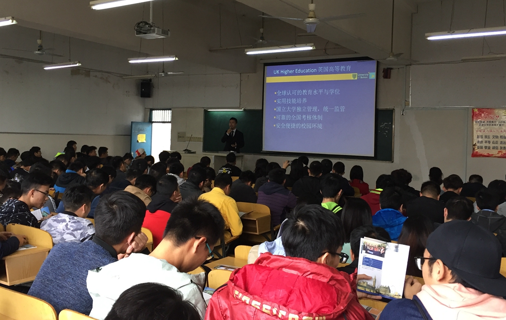 当天下午,Ben Chen等一行和在校三届180余位中英班员工共同分享了在博尔顿大学学习和生活情况、升学途径、申请注意事项,解答了2018年大三员工赴英继续双学位学习材料办理相关问题。正在学校为中英班授课的博尔顿大学材料研究所博士生导师耿俊峰教授也为员工做了学业方面的指导。