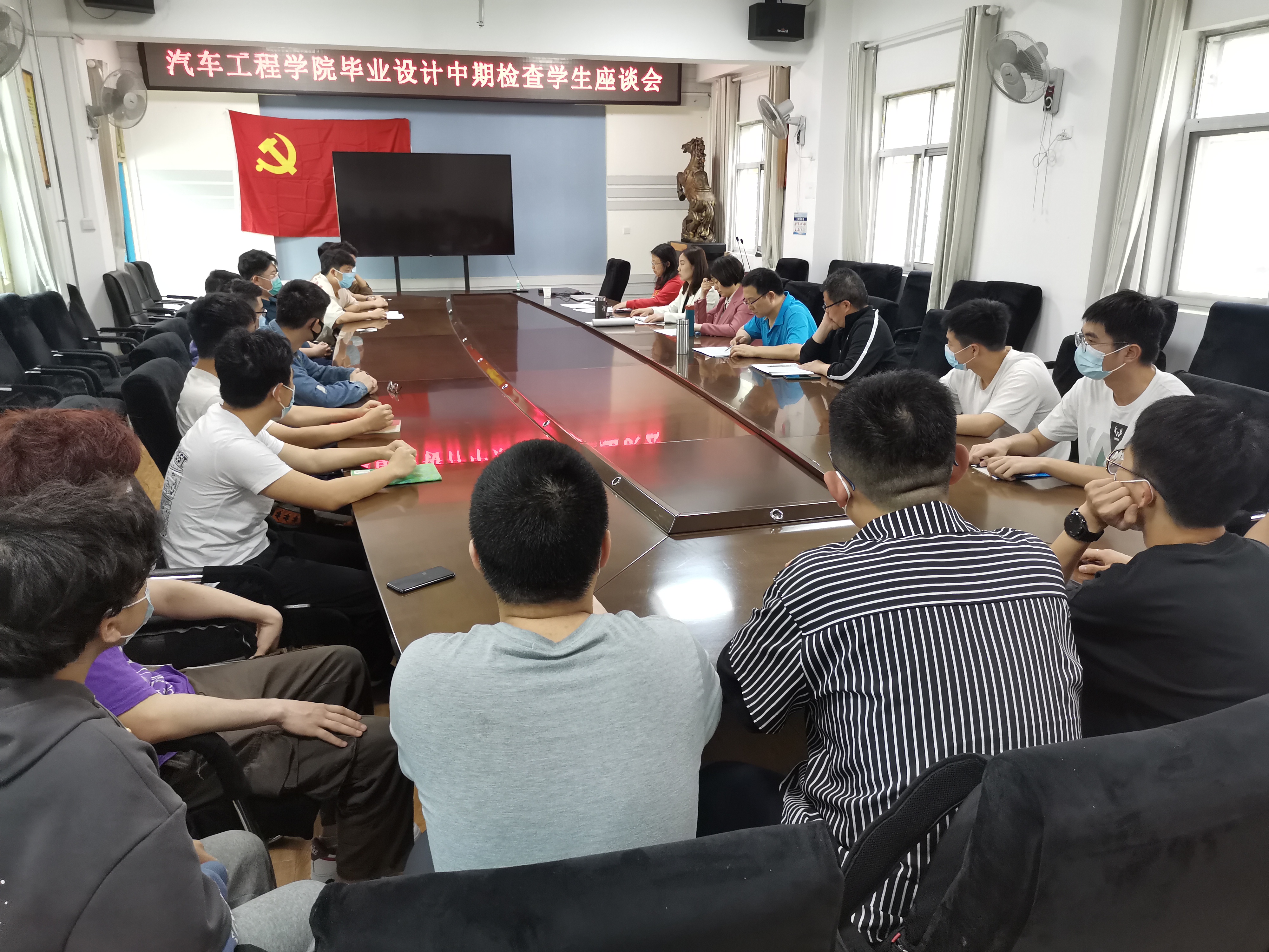 座谈会上每位同学对毕业设计工作进度、目前遇到的困难、导师指导情况进行了汇报。学院教学质量监控委员会成员根据具体情况,针对性的给出帮扶意见。座谈会上了解到,大部分员工能够按照计划推进开展毕业设计,指导教师也定期对员工开展了指导和答疑工作。