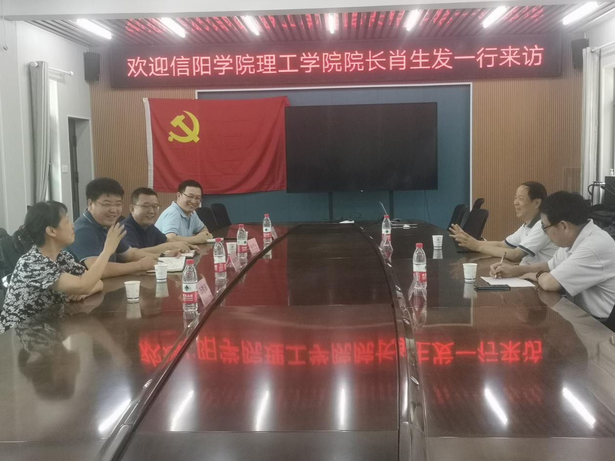 8月22日上午10点,信阳学院理工学院经理肖生发、任柏林来访交流,汽车学院胡明茂经理、杨亚会书记、李楚琳、邓召文等老师在学院二楼大会议室接待了肖生发一行。