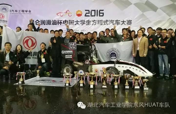 2015年10月:参加第6届中国老员工方程式汽车大赛,东风HUAT车队油车以总成绩880.12分获得全国总冠军,单项奖包括燃油组第一名、易车新闻传播大奖、勇哥缘梦造梦FSC大奖、成本分析第三名、直线加速第二名、高速避障第三名、耐久赛第二。