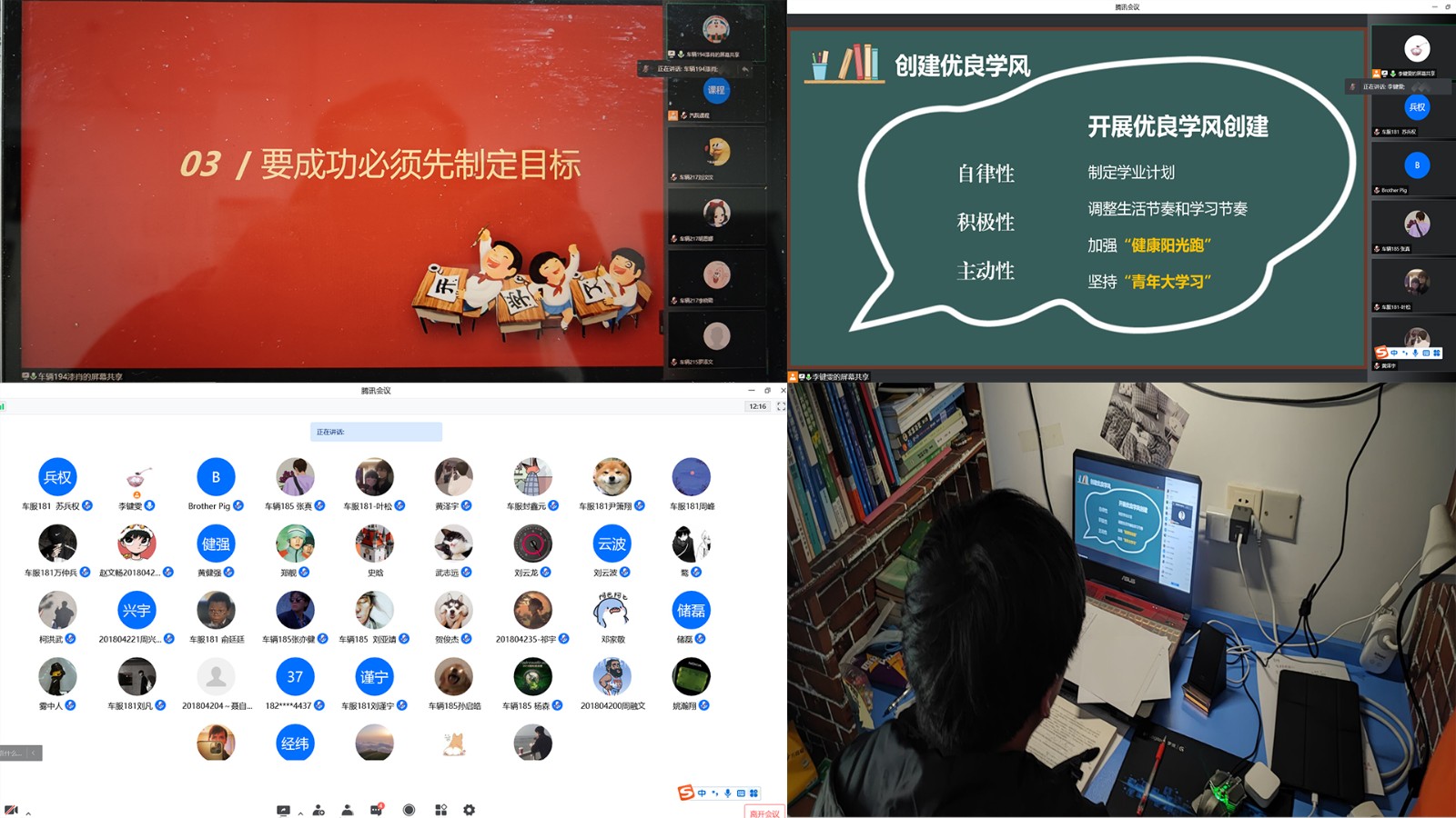 此次班(团)会以“展望新学期,加油向未来”为主题,主要内容包括五个方面:开学优良学风创建讨论、生命健康教育、心理健康教育、期初安全教育和国家安全教育。班会上,各班班主任按照学校要求并结合班级实际情况,讲述优良学风建设要点;他们对当前员工学习情况进行分析,鼓励员工制定学习计划,强调学习方法、端正学习态度、注意听课习惯等方面内容。随后,在健康与安全的教育板块,老师们积极宣传新冠疫情的防护知识,做好疫情后的心理调适,并强调要坚持健康打卡;最后以短视频等多种形式向员工们介绍了当前国家安全形势,帮助同学们树立国家安全意识。在周日“晚点名”活动上,车辆194班优秀学长漆肖以“微团课”的形式向21级员工分享了学业规划的有关经验。