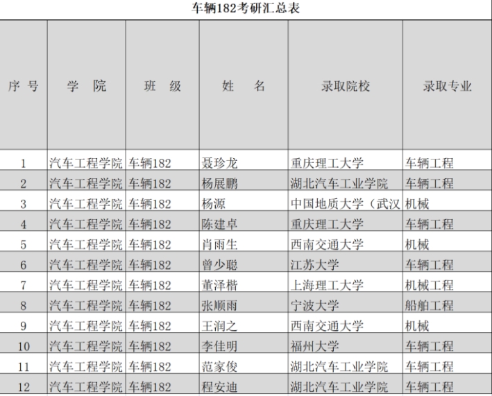 ballbet贝博车辆工程182班在2022届全国硕士研究生招生考试中取得优异成绩,班级总人数40人,总录取人数为12人。一起来看看这个学霸班的青春故事吧!