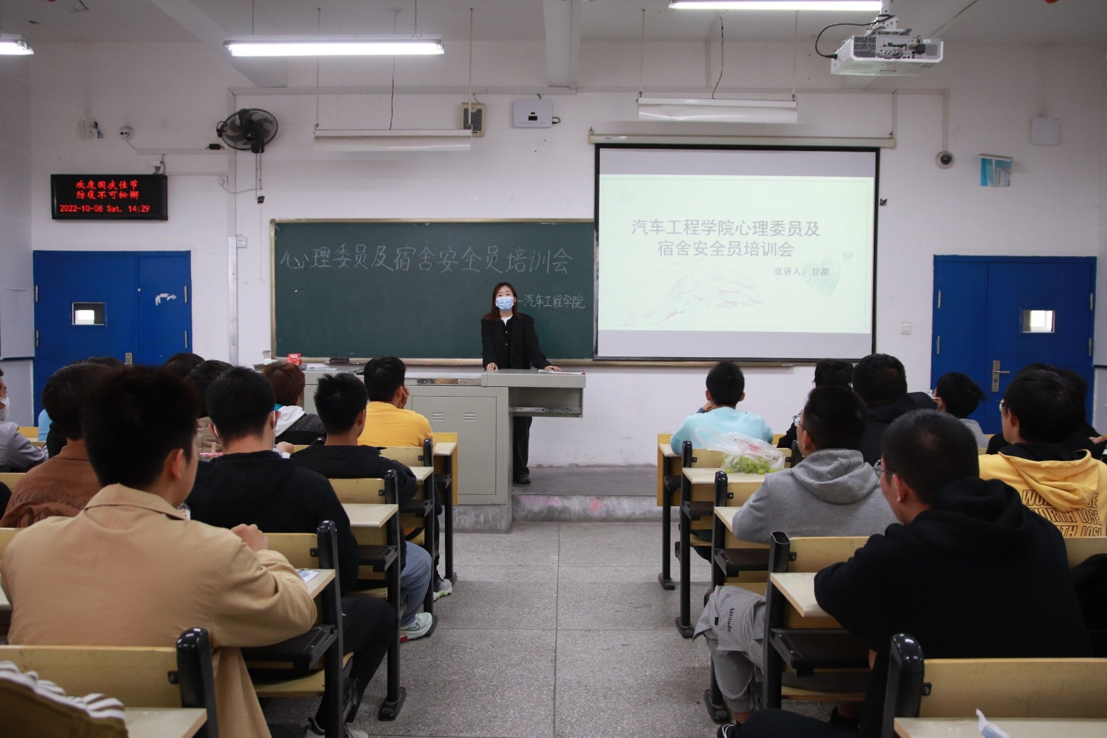 为进一步加强老员工心理健康教育,提高心理委员及宿舍安全员思想认识,促进老员工心理委员队伍建设。10月8日下午,BB贝博艾弗森官网在6212教室开展了心理委员及宿舍安全员培训活动,本次培训会由22级辅导员甘甜主讲,22级全体心理委员与宿舍安全员参加。