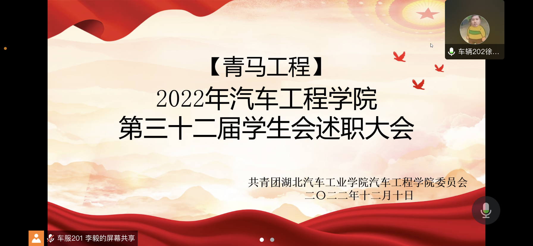 12月10日晚上,BB贝博艾弗森官网组织召开了2022-2023学年(上)第三十二届员工组织述职大会。会议以线上的形式进行,辅导员李键雯、第三十二届员工组织全体成员以及部分员工代表参加了此次会议。
