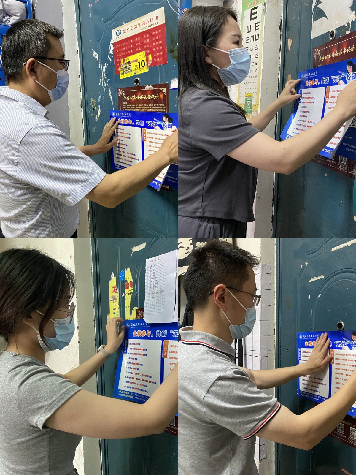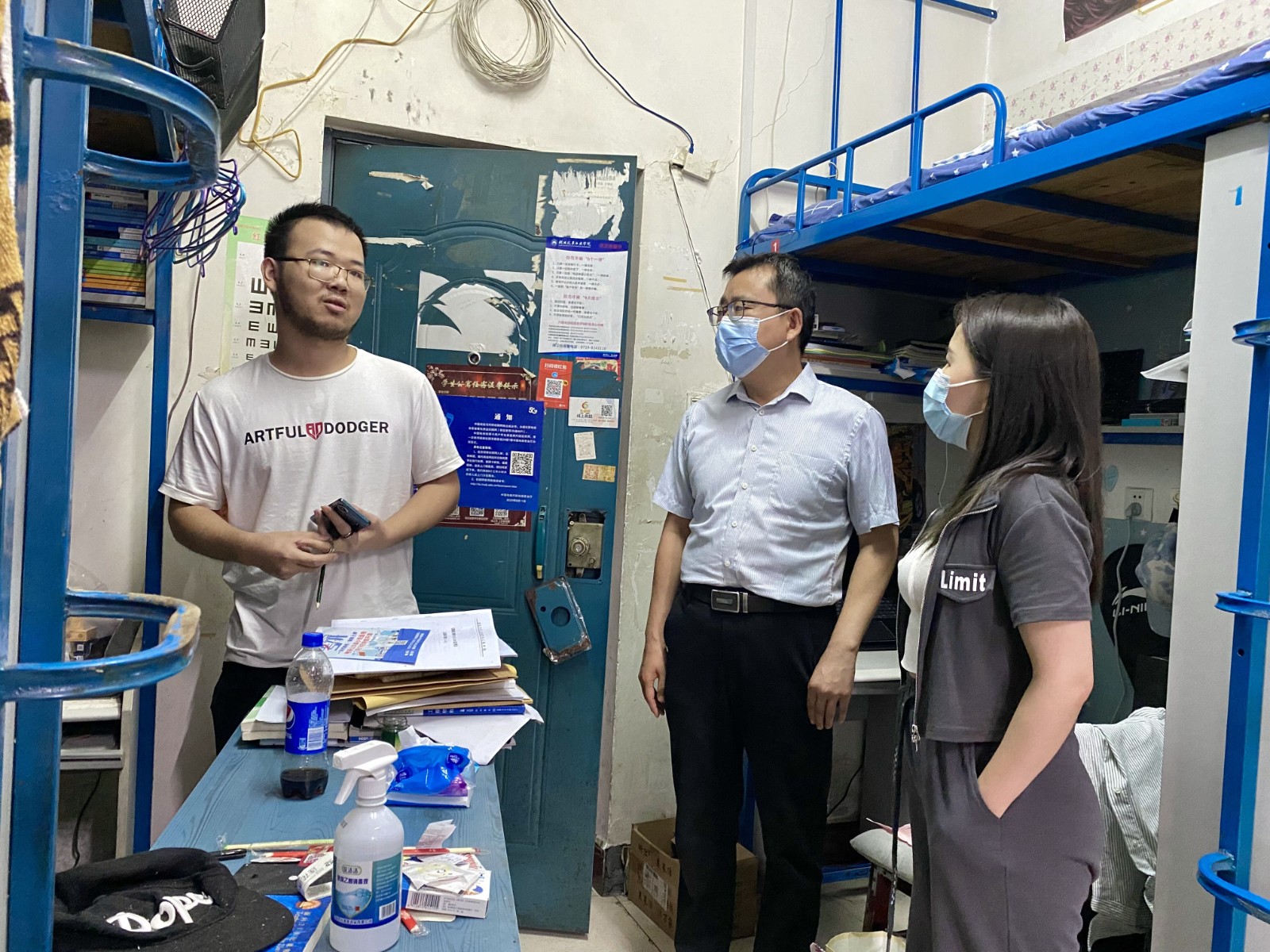 在桃四男寝走访过程中,杨亚会与19级车服班同学们围绕就业、升学以及毕业论文、答辩的准备情况进行了深刻交流,针对员工反馈的离校程序和安排了解不及时、进档材料填写要求不清晰等问题,他表示一定尽快协调解决,让所有的毕业生都能够体验更高效更有爱的毕业季。在调研21级、20级宿舍时,他认真检查了寝室配套设施是否安全,关心大家的身体健康状况,提醒大家要做好寝室内务、及时通风,时刻防范流行疾病的传播。养成将垃圾带下楼的良好卫生习惯,相互监督提醒,积极配合学院公共区域卫生治理工作。同时他还逐一检查了各寝室的“防诈贴士”的张贴情况,并亲自为部分寝室张贴了“全校参与,共创无诈校园”的新宣传海报,结合近期发生的电诈典型案例,讲解防范措施,再三告诫同学们从思想上保持警惕,提升个人反诈能力、素质,认真学习反诈常识,增强个人法制观念,守住法律底线。