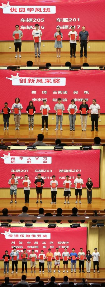 “衷心感谢学院领导、辅导员、班主任和全体老师的关心和爱护,作为汽院的一份子,我们将继续遵循学院学风建设的精神,发扬学校“求实创新”的校训,用坚持成就梦想,用拼搏续写辉煌!”来自车辆216优良学风班代表刘汶汶、优秀个人交流发言。