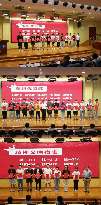 胡明茂宣读了表彰决定。大会对2022-2023第一学期获得“单科优胜奖”、“专业优胜奖”、“创新人才奖”、“优良学风班”、“文明宿舍”、“青年大学习优胜奖”、“步道乐跑优秀奖”等先进集体和个人进行了表彰。学院班子成员及辅导员为获优秀个人和优秀集体员工代表颁发了荣誉证书。