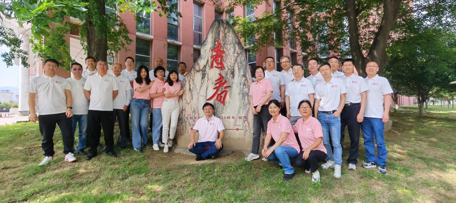 在校史馆中,员工们在泛黄的老照片前驻足许久,争相寻找自己当年的宿舍和教学楼所在位置,共同追忆那段留在汽院的求学岁月和奋斗拼搏的青春年华,并集体前往该班员工在毕业20周年返校时为母校赠送的“青春”石头前合影留恋。