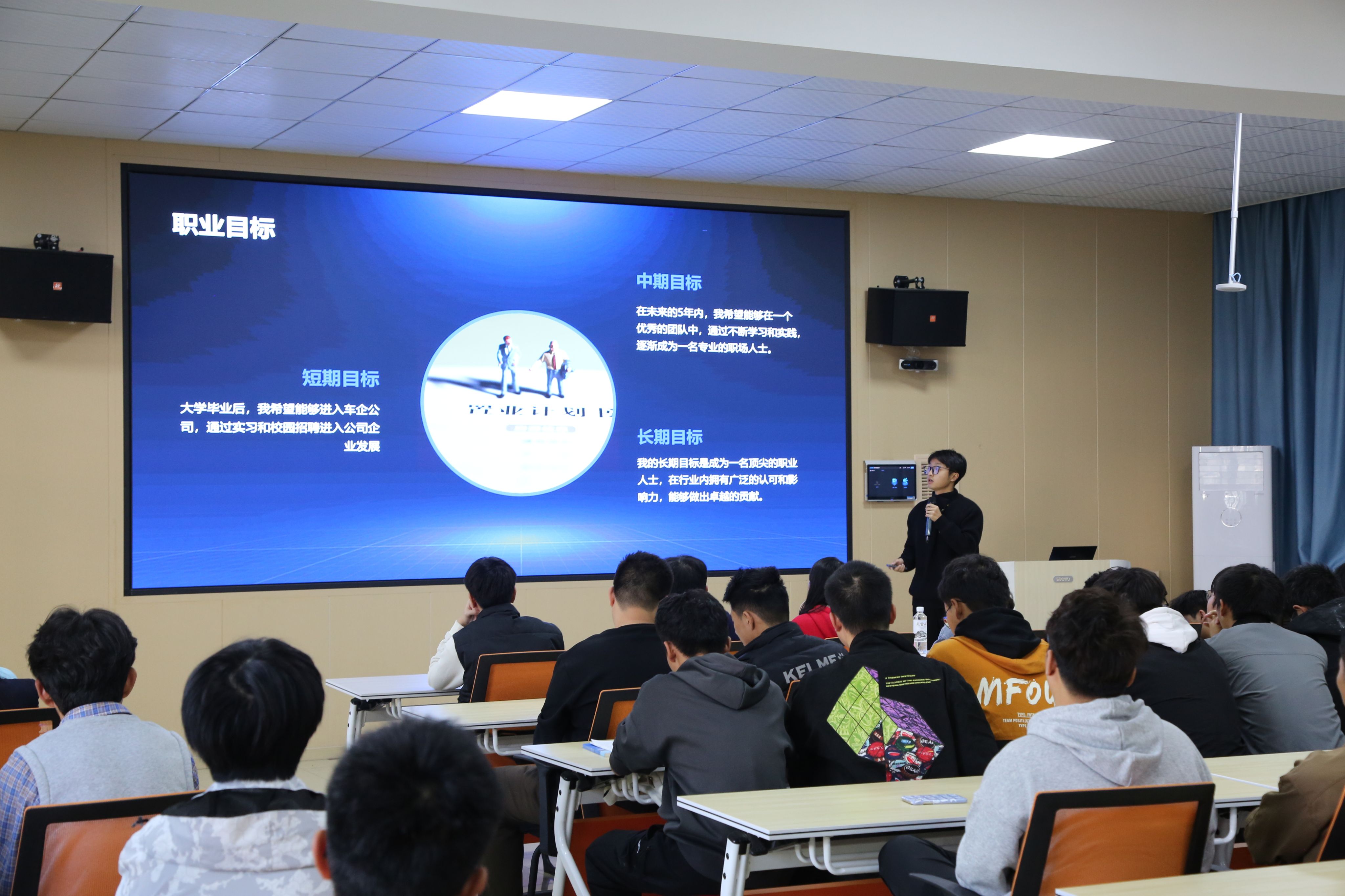 比赛现场气氛热烈,参赛选手们精神饱满,通过PPT展示和演讲,阐述了职业目标、发展路径以及实施计划,并针对自我认知与职业认知展开了深度剖析,细致规划了职业生涯的决策、实施路径、评估以及调整策略,展现出了对未来职业生涯的清晰规划和坚定信念。评委们从职业规划的合理性、可行性、创新性以及选手的现场表现等多个角度进行了提问点评。