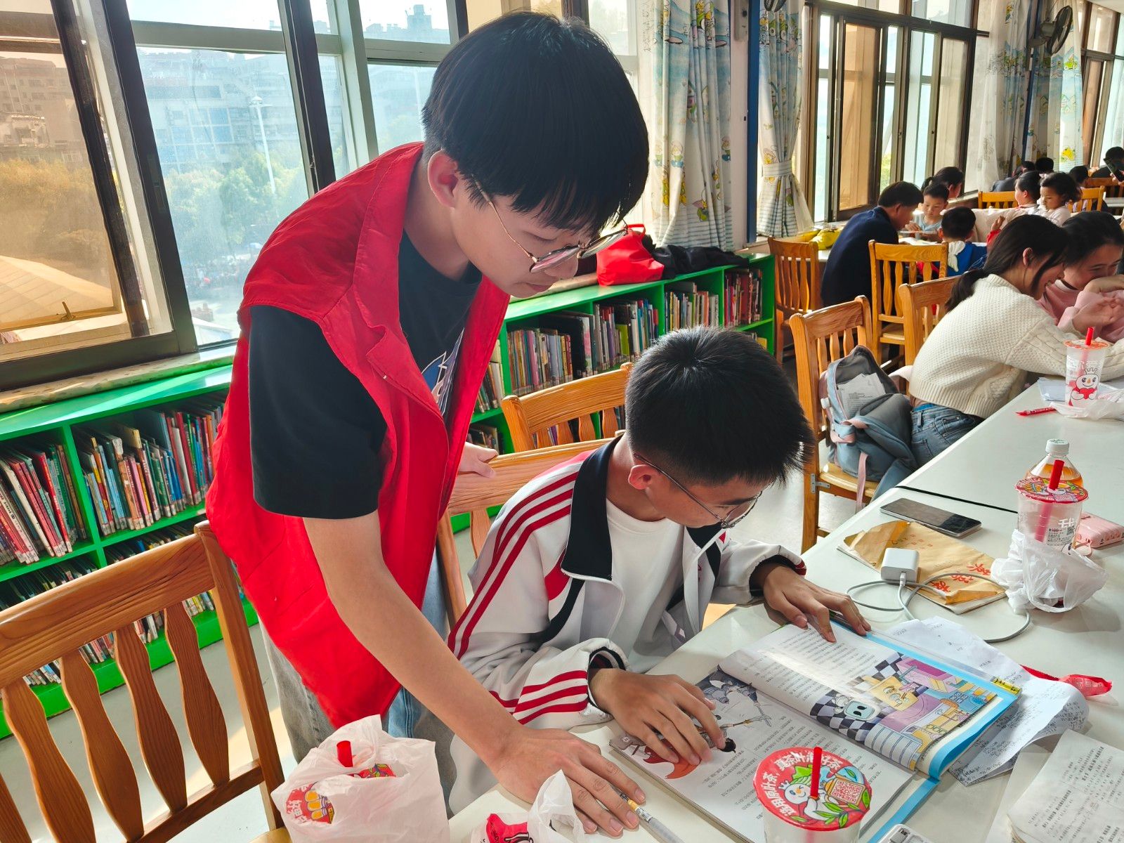 活动中,志愿者们分工协作,高效有序地开展工作。一部分志愿者负责图书整理,细致核对、分类上架,确保读者借阅便利;另一部分志愿者则化身“阅读助手”,耐心解答读者咨询,协助操作借阅设备,维护阅览秩序,营造安静、整洁的阅读环境。