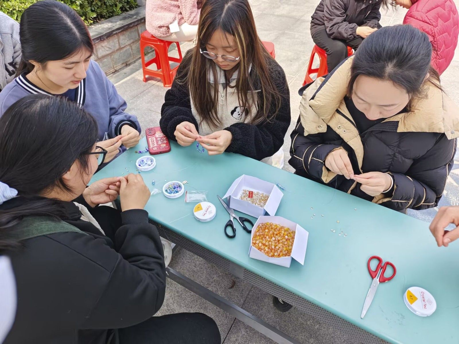 “没想到传统手工艺这么解压!”“看着一颗颗小珠子慢慢变成作品,焦虑感都消散了。”参与员工纷纷表示,串珠过程中专注的“心流体验”有效缓解了学业压力,集体创作的氛围更强化了情感联结。