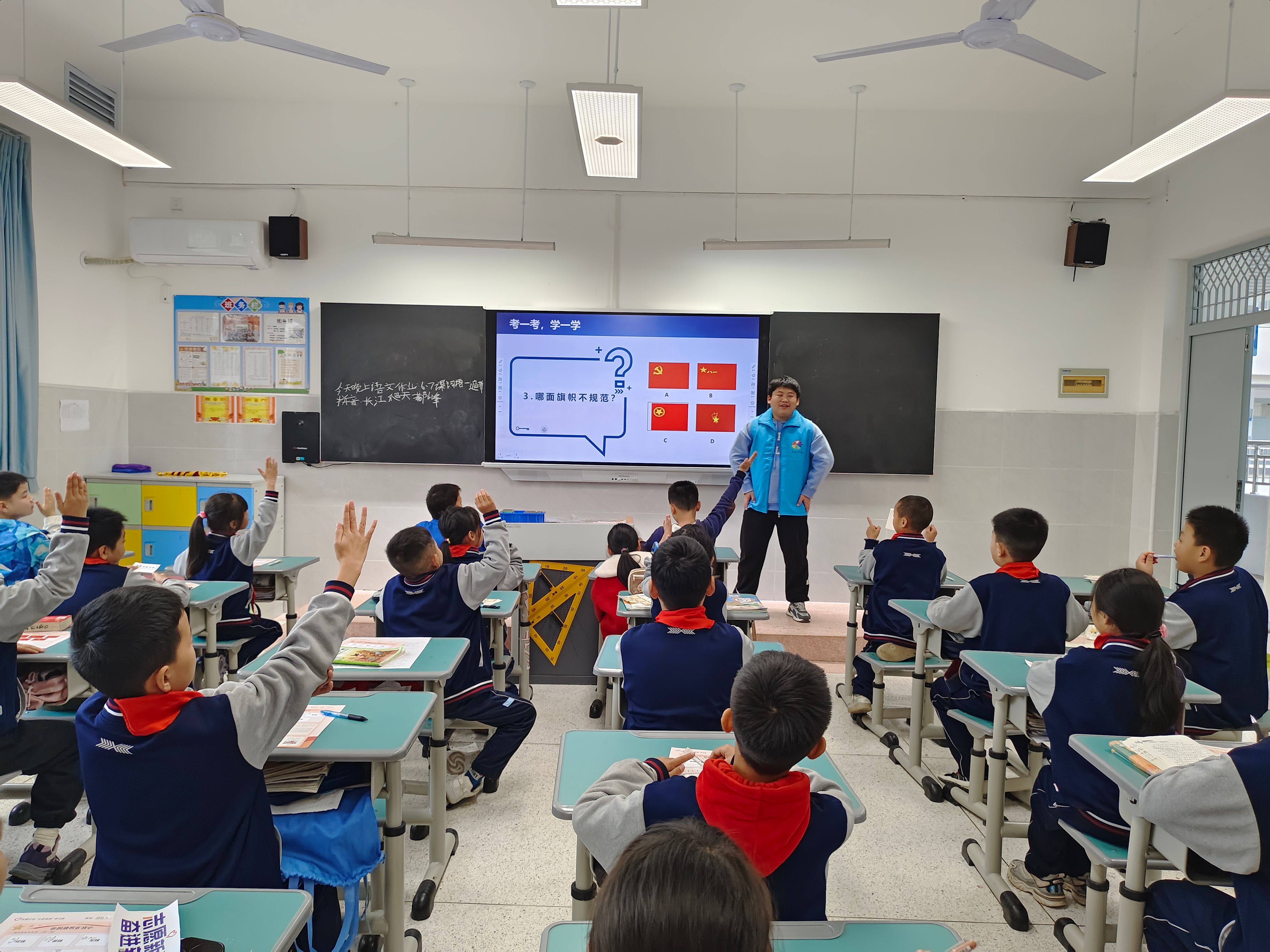 11月12日,志愿者面向4-6高年级小员工开展了以“祖国旗帜在我心”为主题的思想引领课程,通过组织员工观看祖国发展历程的纪录片,引导员工亲手制作国旗国徽模型等方式,深化孩子们的爱国情怀。