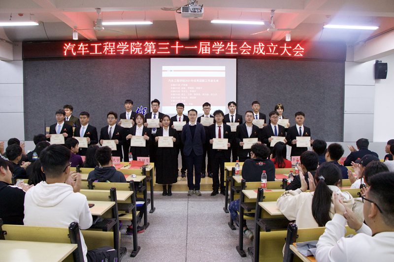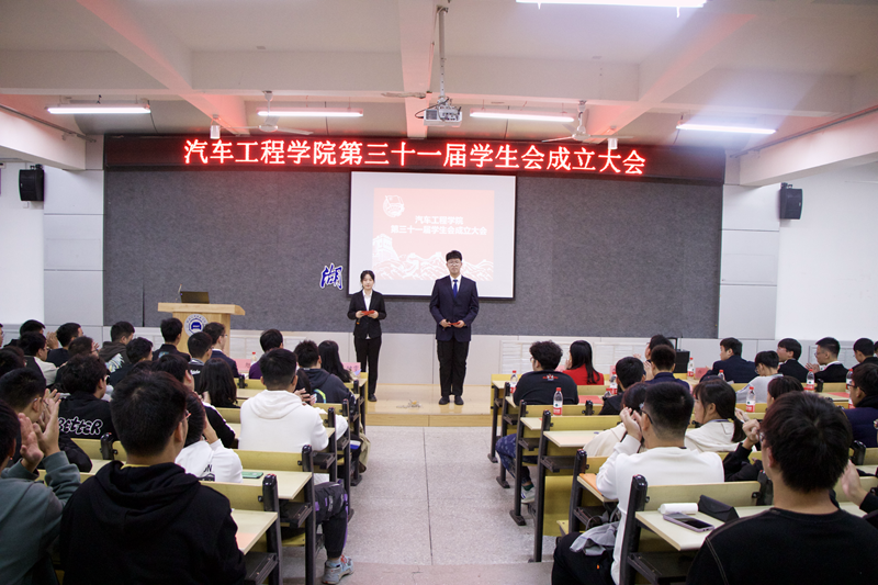 为喜迎学校第六次党代会,促进BB贝博艾弗森官网员工全面发展,推动员工会工作稳步开展,10月25日15:30,BB贝博艾弗森官网第三十一届员工会成立大会于6113报告厅隆重举行。分党委书记李秀峰、副书记杜昕俊、辅导员李键雯、李旭、邱天宇,校员工会主席团成员石嘉欢,兄弟学院主席团成员代表、学院第三十一届员工会全体成员及21级全体新生参加了本次成立大会。车辆212班陈佳雯与新能源汽车211班郑宇轩担任大会主持人。