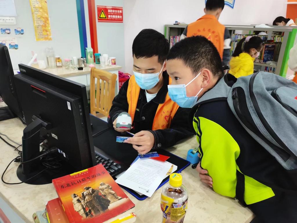 此次活动主要是维护图书馆儿童区秩序,帮助孩子们顺利完成书籍借还,也承担部分整理分类图书的任务。活动开始,市图书管理员为队员们初步讲解借还书的规范流程与注意事项,领队吴宇菡安排队员们以两到三人为一组,分别负责前台借阅咨询、书籍归类整理、引导中小员工正确使用自动还书机等工作。除此之外,部分志愿者在管理员的带领下于儿童区出入口维护秩序,并且提供图书借阅咨询服务。