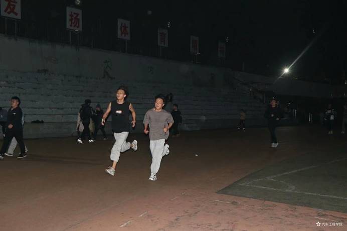 9日晚19:30,集中夜跑活动正式拉开了序幕。十一月中旬的天气渐凉,但抵挡不住同学们对夜跑的热情,灯光下奔跑的身影构成了汽院美丽的风景线,他们头上套着荧光圈,手腕带着荧光环,像无所畏惧的前行者,一圈、两圈、三圈…清冷的空气里弥漫着车院青年人的呼喊声:“车院,加油!车院人,跑起来!”参加夜跑的车辆205班梅治成表示:“跑步能够将我们从学习的疲惫中抽离出来,不仅能舒缓身心、放松心情,还能锻炼身体、增强体魄。我一定会每天坚持参加的!”在活动的最后一天,第三十届员工会全体员工干部齐聚操场,迈着整齐的步伐,在田径场上列队奔跑,他们手持院旗,勾勒出靓丽的弧线。