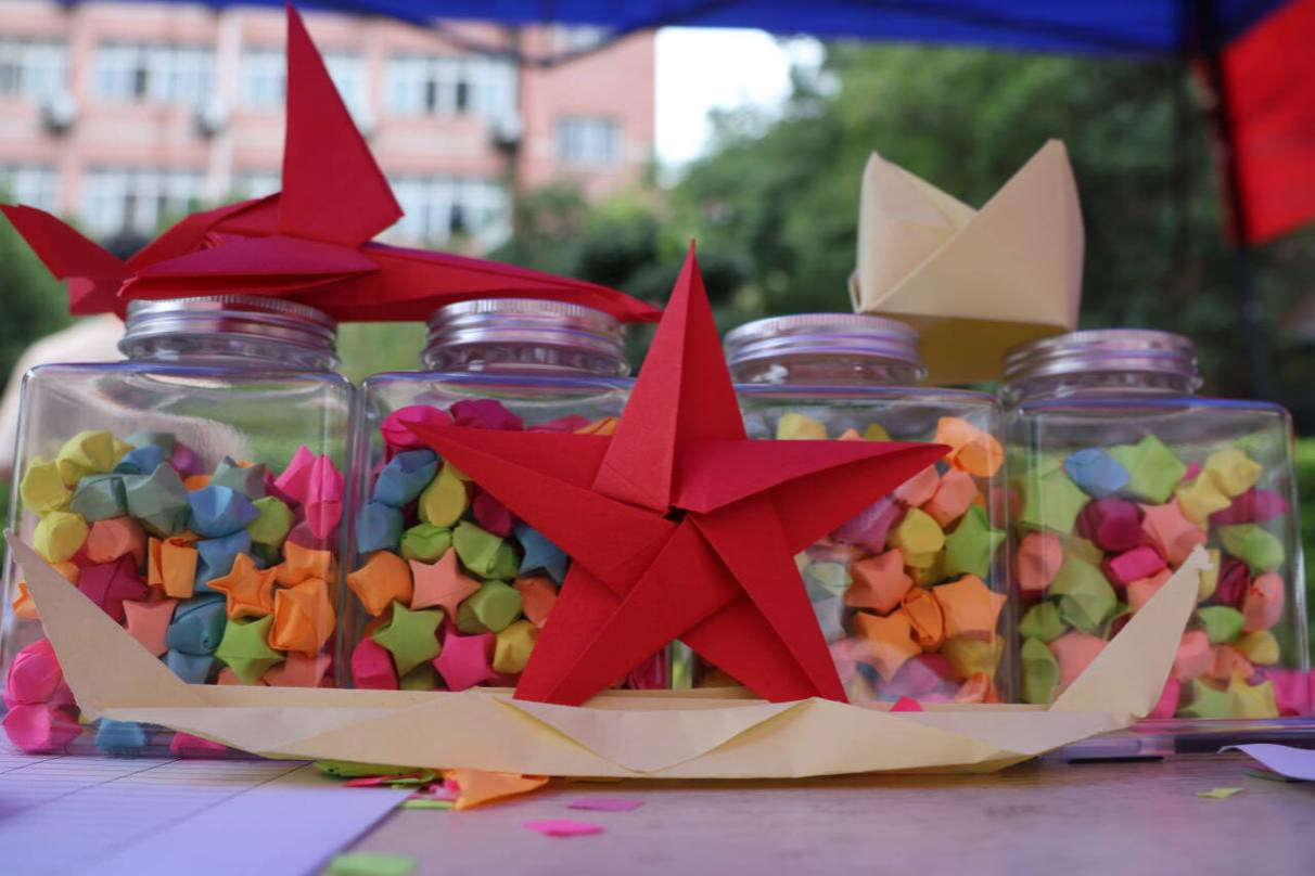 活动现场,工作人员准备了彩色纸条与便签,示范折纸教学,一张张彩纸在员工手中翻转折叠,逐渐化为代表坚毅的五角星,每一件作品与留言都寄托着对祖国的祝福与先烈的缅怀。参与的同学们热烈交流,回溯那段风雨如磐、苦难辉煌的奋斗历程,深刻感悟到民族独立与人民解放的来之不易。