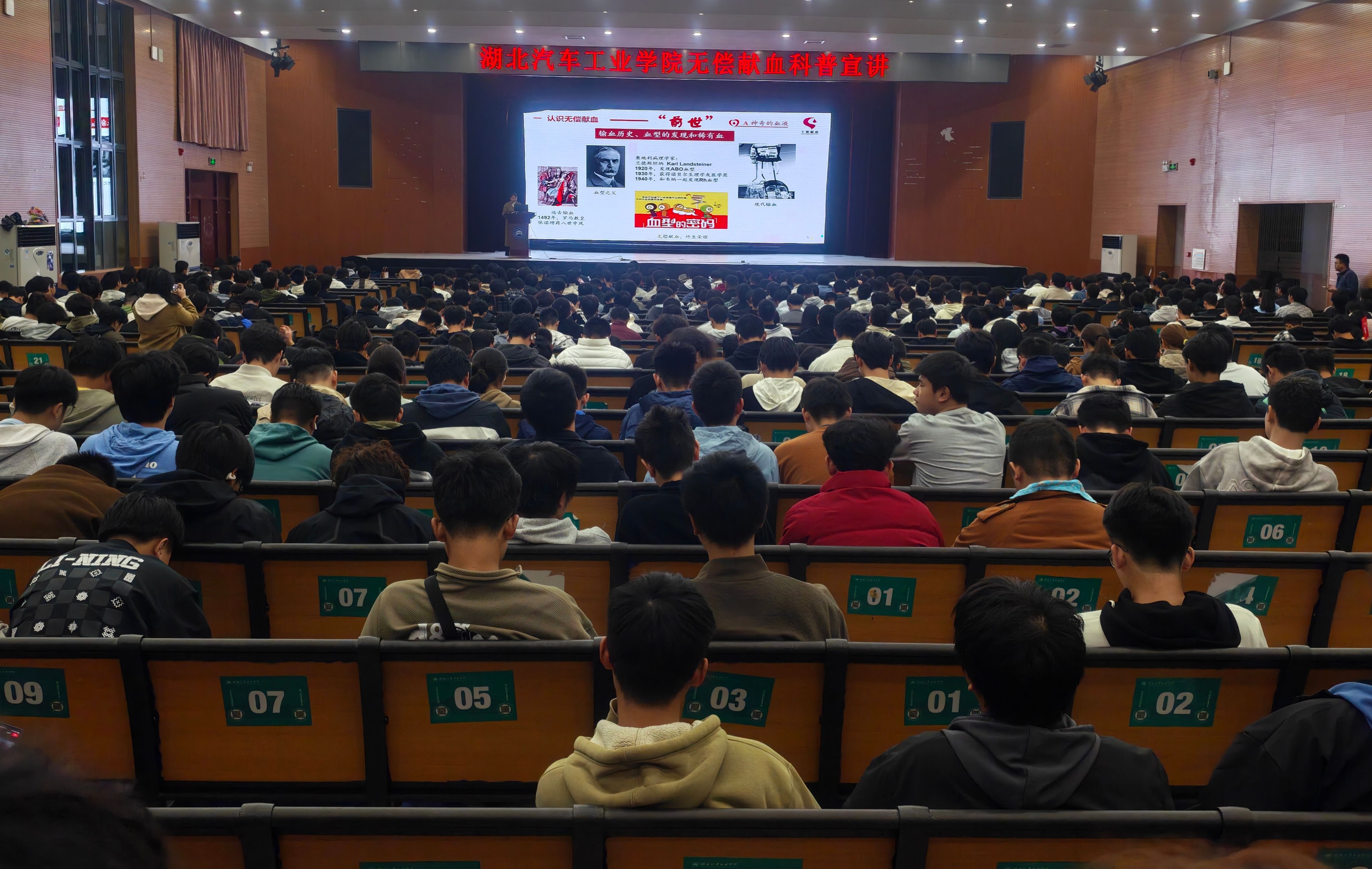 本网讯(文/图 李键雯)为进一步加大无偿献血宣传力度,普及科学献血知识,广泛传播“献血有益、公益光荣”的理念,2025年10月26日晚上,BB贝博艾弗森官网邀请十堰市中心血站进行无偿献血科普宣讲,为学院2025级全体新生带来一场内容详实的无偿献血科普宣讲活动。
