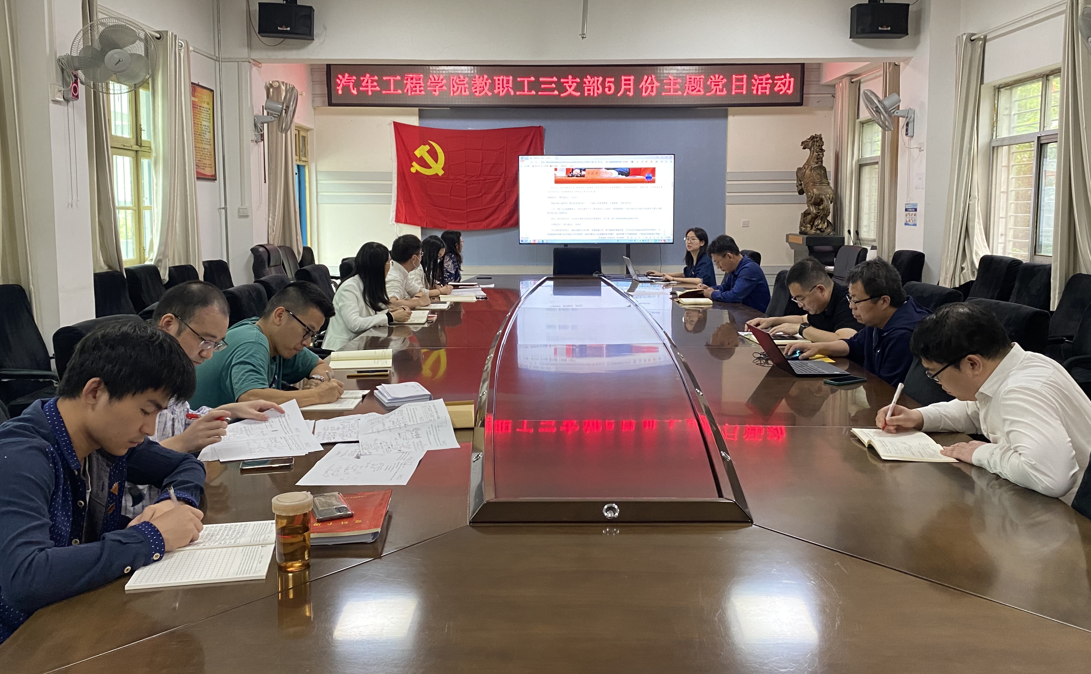 随后,郑冬黎介绍了教师三支部创“双十星”支部示范点的相关情况,李秀峰通报了学院“十四五”发展规划思路,杜昕俊介绍了学院“清廉车院”活动开展情况,传达了学校干部勤政廉政集体谈话会的有关精神,并对支部全体党员进行了廉政提醒。