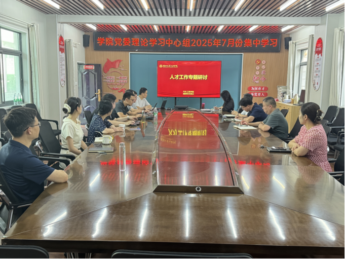会议集体学习了习近平关于人才工作的论述,并进行了专题研讨。经理胡明茂在讨论中提出现在是学校的高速发展期,人才是支撑学院发展的基石,要认真学习领会习近平总书记关于人才工作的论述,要学以致用,做好学院的人才工作。