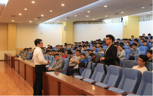 杨教授在此次交流会上,首先从自身的经历出发,讲述了从汽院求员工涯到如今工作十多年的心路历程,深入浅出地与同学们分享自己的求学、工作、科研及生活中各个阶段的经验教训,并为同学们提出了未来发展的建议。“汽院读大三的时候,我在考研与就业的选择中,也曾感到迷茫。但在经历了一些激烈的思想斗争之后,便毅然做出了考研的决定,此后便义无反顾。”针对大三同学现阶段最关心的问题,杨教授这样说到。最终他凭借自身沉着、认真、不惧失败,坚定梦想的特质,考取了华中科技大学硕博连读。并在博士即将毕业之时,他放弃了高薪的工作机会,选择了自己热爱的科研。最后,在担任教授期间,为响应高校教授与企业合作的国家政策,他在坚持自己的科研事业的同时,进入了巨轮智能装备有限公司,并开创了自己的创业研发团队,实现了科研与创新创业的完美结合。
