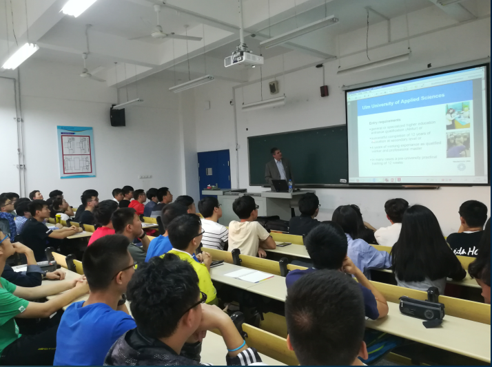 9日晚上,Dr.Schrade教授为公司正在准备赴德学习的2014、2015、2016级员工作了专题讲座,对乌尔姆应用科技大学的地理位置、教育模式、专业设置、教学资源、科研设备和国际合作交流等作了全面介绍。在场员工也纷纷就自己感兴趣的话题用德语与Dr.Schrade教授进行了沟通,为有意赴德学习的员工全面了解乌尔姆应用科技大学创造了一次良好的机会。