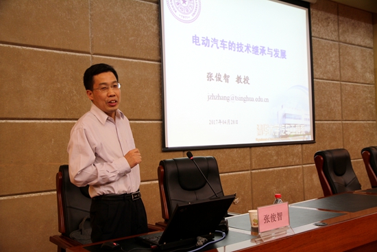 本网讯(文 韩娟/图 杜剑彬)4月28日下午,清华大学教授、博士生导师张俊智应邀做客公司“东风讲坛”,在逸夫图书馆报告厅作了题为“电动汽车的技术继承与发展”的专题报告。报告会由副董事长罗永革主持。