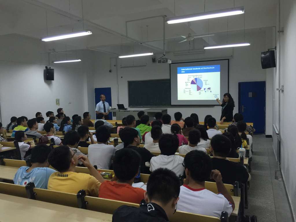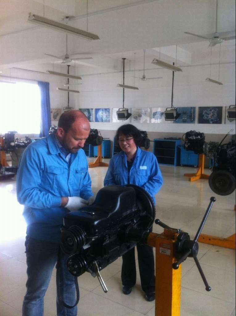 Dr. Watty教授目前全面负责机械及BB贝博艾弗森官网对外合作交流工作。6日下午和7日白天,Dr. Watty教授对今年9月即将赴德国学习的11位员工进行了笔试和面试,并确定了赴德员工人选。7日晚,Dr. Watty教授为公司正在准备赴德学习的2012、2013、2014级员工作了专题讲座,对乌尔姆应用科技大学的地理位置、教育模式、专业设置、教学资源、科研设备和国际合作交流等作了全面介绍。在场员工也纷纷就自己感兴趣的话题用德语与Dr. Watty教授进行了沟通,为有意赴德学习的员工全面了解乌尔姆应用科技大学创造了一次良好的机会。8日,在BB贝博艾弗森官网胡群老师的陪同下,Dr. Watty教授对公司发动机拆装实验室等实地考察,对实验室建设提出了宝贵的建议。