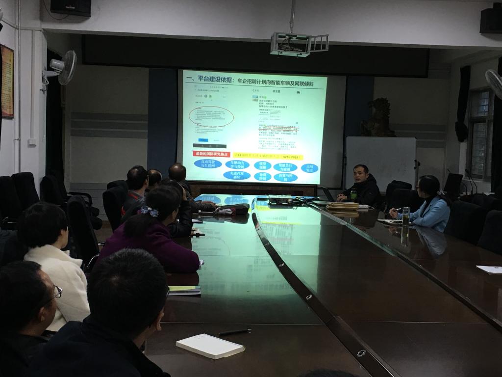 杨正才博士从学院自动驾驶汽车的研究现状出发,详细讲解了平台建设的必要性,平台建设的主要内容,并拟定了平台建设的初步计划,提出了搭建过程中拟待解决的问题。针对目前学院的研究情况和平台搭建面临的困难,老师们积极参与讨论,并提出个人的想法和建议。