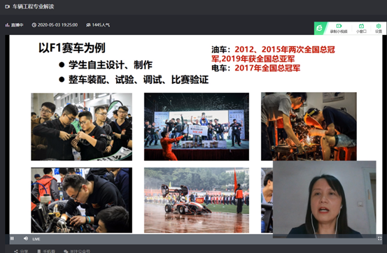 为向高考学子普及车辆工程专业的有关知识,增强大家对汽车行业的信心以及进一步扩大公司的影响力,在学工部的大力支持下,作为国家一流专业建设点的BB贝博艾弗森官网车辆工程专业,于5月3日晚通过华中人才招聘信息网旗下的“678好志愿”第三方平台,以网络直播形式为全省高三考生及家长开展了“大学专业解读之车辆工程专题宣讲会”。本次宣讲由BB贝博艾弗森官网副教授、车辆工程专业负责人李楚琳以专家身份担任主讲。