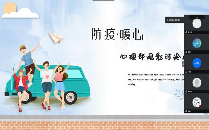 为进一步做好员工居家学习的心理健康教育工作,BB贝博艾弗森官网于5月10日12:10依托网络平台开展了“防疫·暖心”为主题的线上观影心理健康活动。BB贝博艾弗森官网心理辅导员李雅琨及学院全体心理委员、寝室信息安全员参加本次活动。