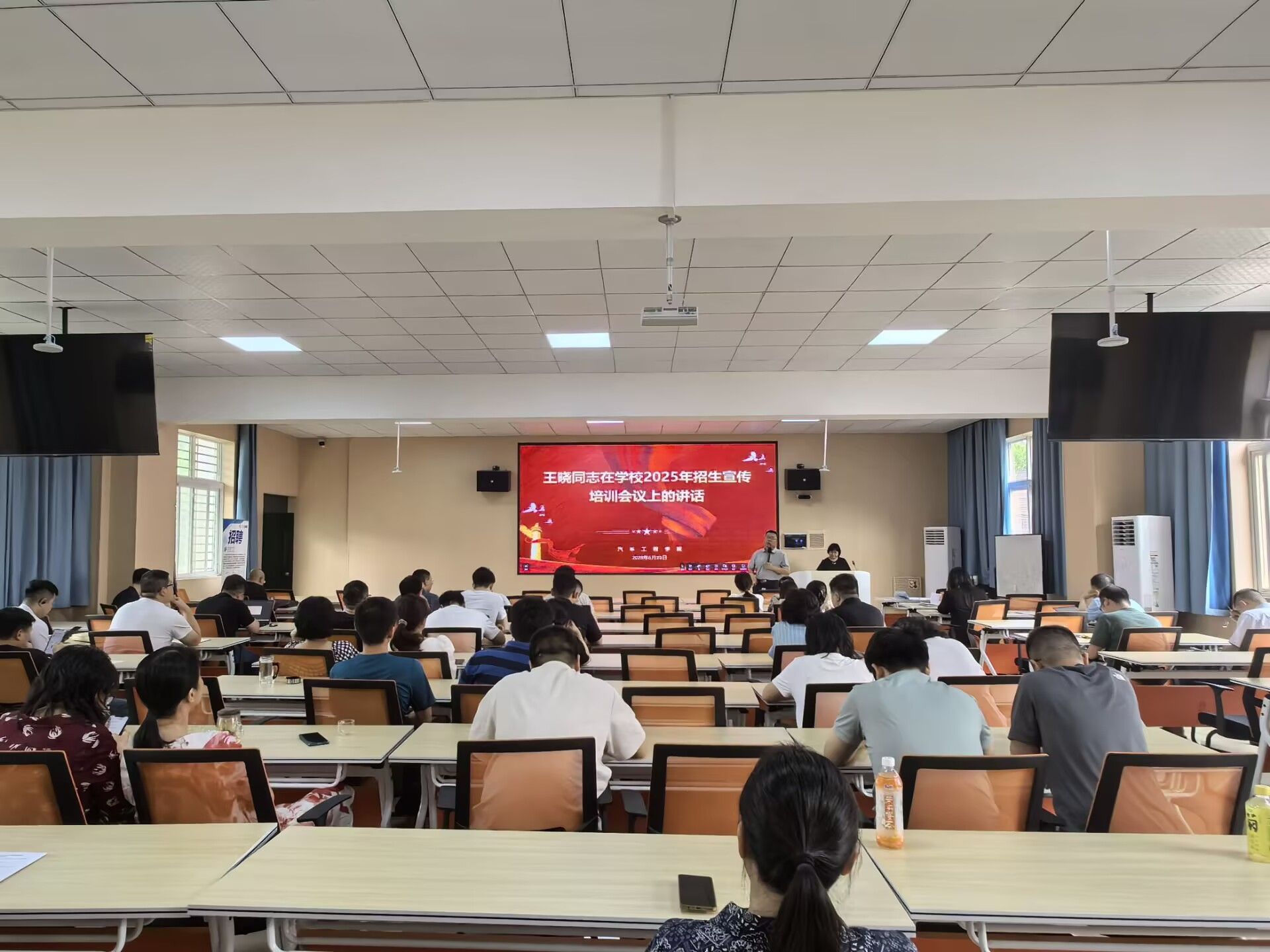 会议伊始,杨亚会传达了董事长王晓同志在学校2025年招生宣传培训会议上的讲话精神,强调了招生工作对于学院乃至学校发展的重要性,要求全体教职工积极参与招生宣传,将集团、公司的办学特色和优势准确传递给考生和家长,为集团和公司吸引更多优质生源。