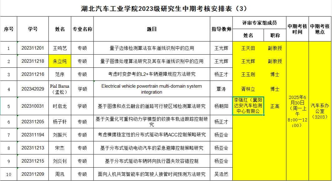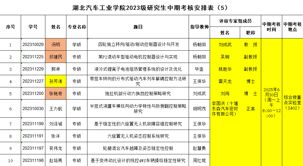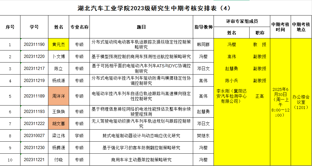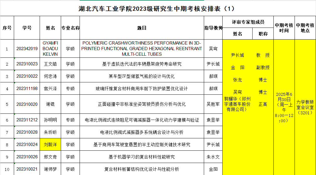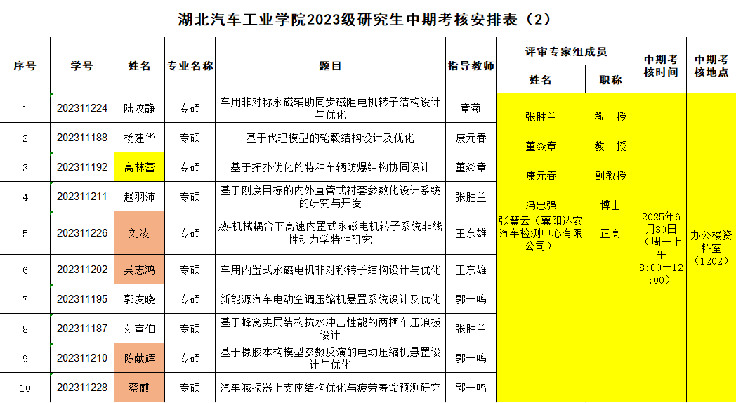 2023级研究生注意,以下是中期考核答辩安排表,请各位同学悉知: