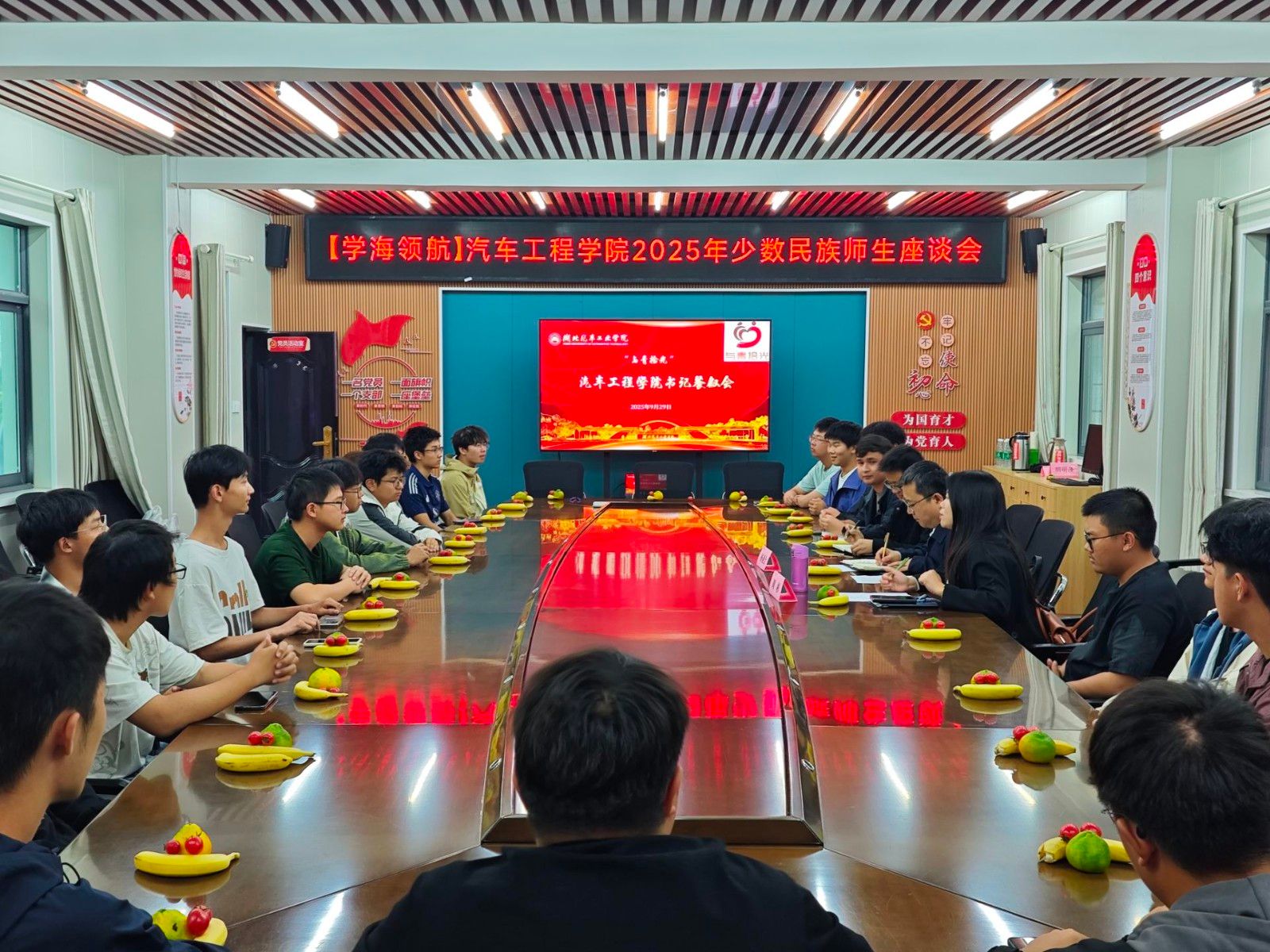 本网讯(文 迪力亚尔、李键雯/图 李键雯)9月29日下午,BB贝博艾弗森官网“与青拾光”书记经理餐叙会在学院二楼党员活动室举办。公司党委书记杨亚会、副书记周彬、学工办老师与30余名少数民族新生齐聚一堂,共话民族团结。