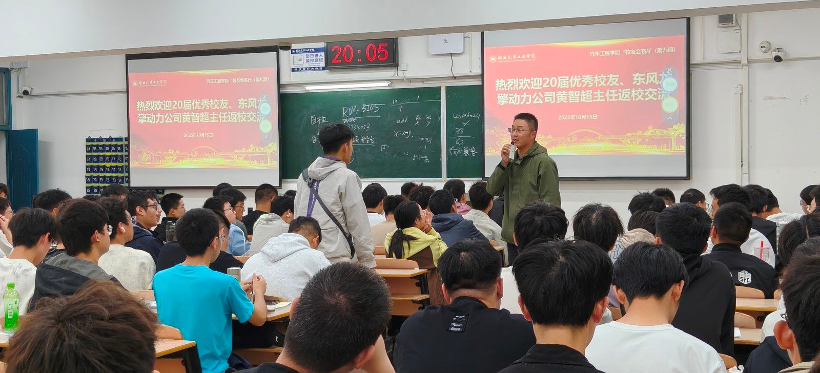 本网讯(文/图 陈超)10月15日,BB贝博艾弗森官网第九期“员工会客厅”开讲,特邀20届优秀员工、东风龙擎动力公司人力资源部干部管理主任师黄智超返校,以“珍惜时间,努力‘绽放’”为题,为学院25级新生开展职业生涯规划专题报告,活动由公司党委副书记周彬主持。