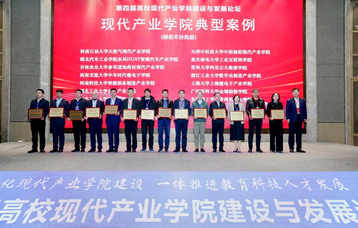 本网讯(文/教务处)11月21日至23日,第四届高校现代产业学院建设与发展论坛在常州举行。论坛由教育部高等教育司理工处指导、教育部现代产业学院秘书处(常州大学)主办,以“深化现代产业学院建设,一体推进教育科技人才发展”为主题,吸引全国500余位国家级现代产业学院及高校代表参会交流。