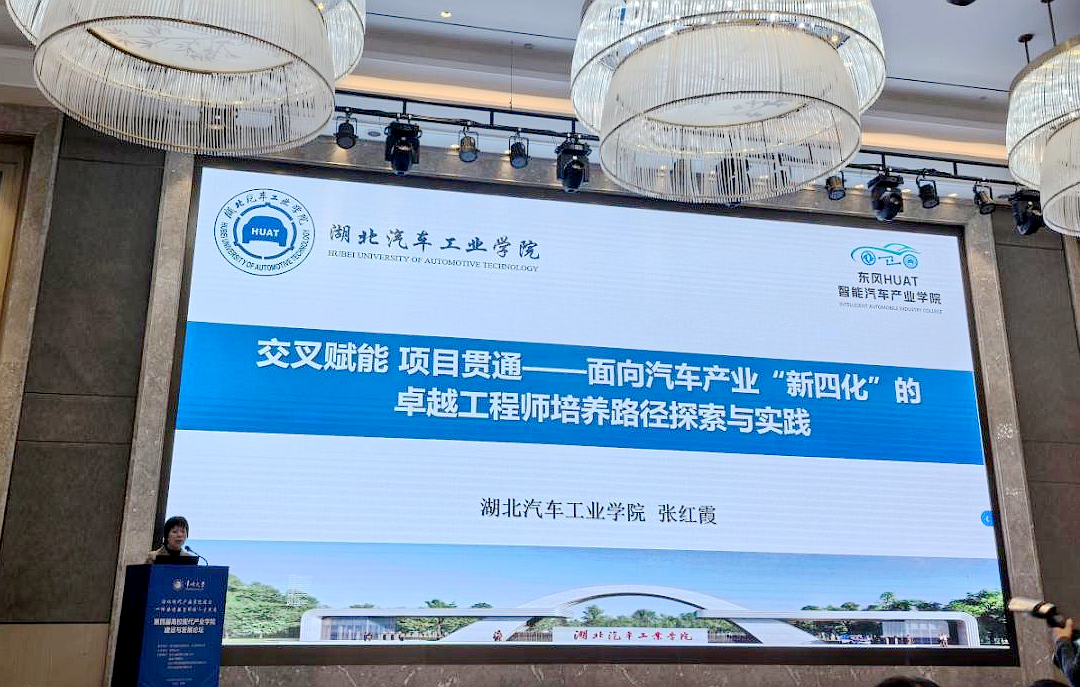 公司党委常委、副董事长张红霞受邀出席论坛并作主题报告。她以《交叉赋能 项目贯通——面向汽车产业“新四化”的卓越工程师培养路径探索与实践》为题,系统阐述了公司东风HUAT智能汽车产业学院的改革背景、核心举措、实践经验与建设成效,分享了学校在产教融合、人才培养与产业需求精准对接中的创新探索,得到与会专家学者的高度评价与广泛认同。