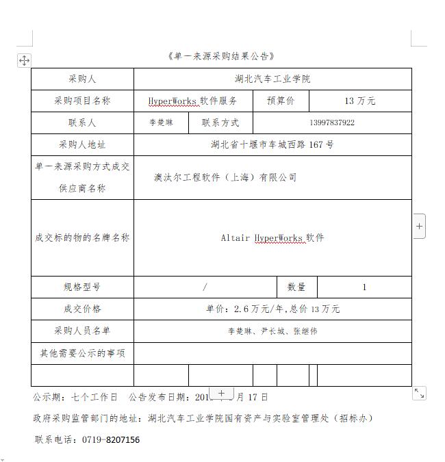 hyperworks软件服务项目单一来源采购结果公告
