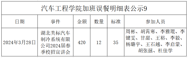 BB贝博艾弗森官网加班误餐明细表公示9
