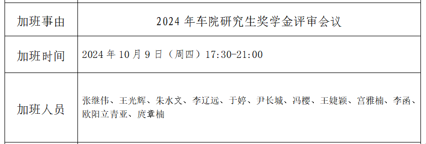 BB贝博艾弗森官网2024年车院研究生奖学金评审会议加班误餐公示