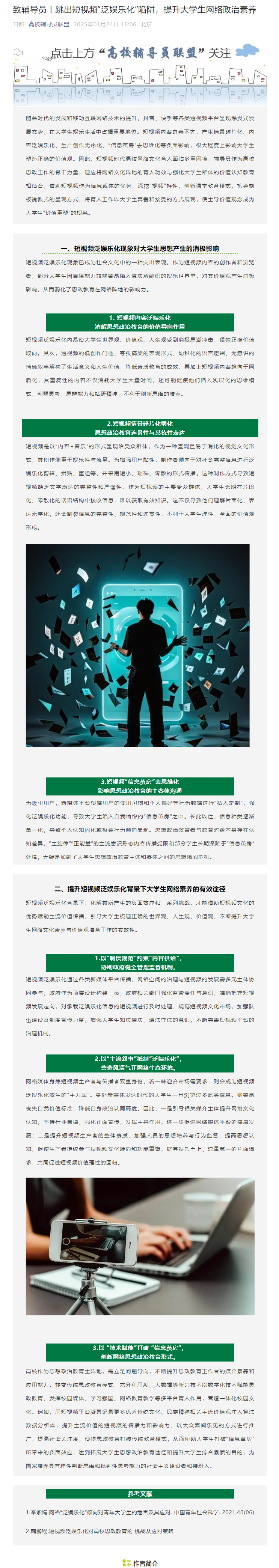 【高校辅导员联盟】致辅导员|跳出短视频“泛娱乐化”陷阱,提升老员工网络政治素养