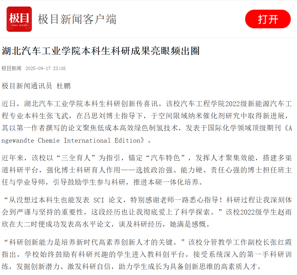 【极目新闻】ballbet贝博本科生科研成果亮眼频出圈