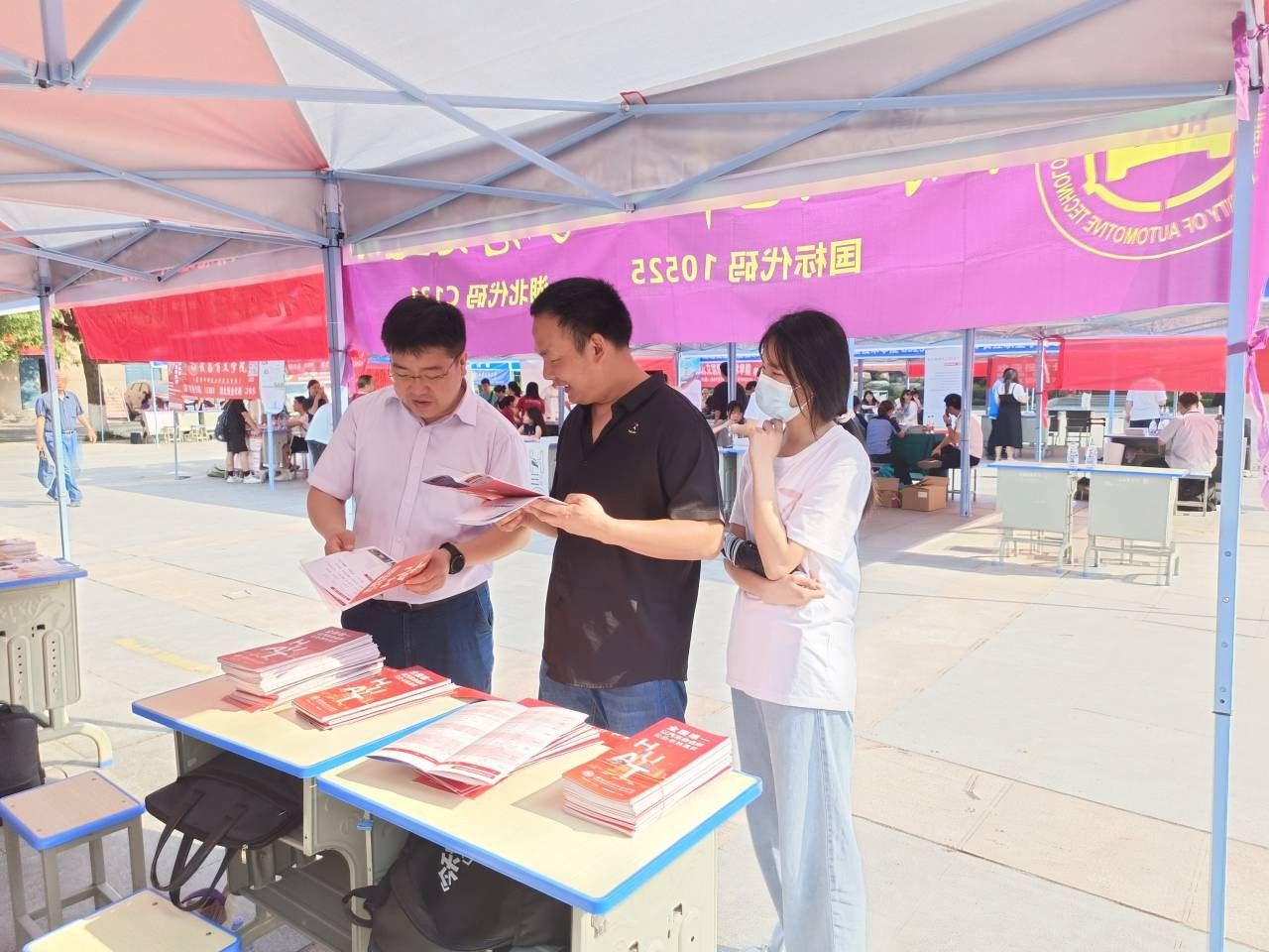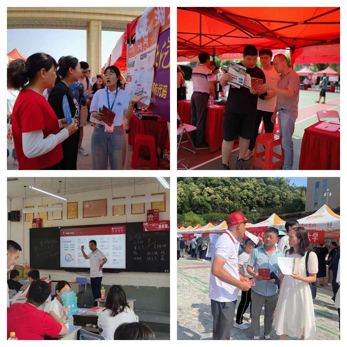 暑气熏蒸,赤日炎炎,参与宣传的师生不畏高温,连轴奔波,赴各地高中详细地向高中老师、考生及家长介绍学校特色专业、团队团队、教学设施等基本情况,以专业特点、专业规划、职业优势等吸引优质生源,讲解2023年学校招生录取政策,为家长、员工答疑解惑,进一步扩大学校在广大高中学子及家长中的影响。6月27日上午,学院分党委书记杨亚会、经理胡明茂、分党委副书记周彬带队到十堰市一中开展招生宣传,在咨询现场向考生及家长详细介绍了学校今年的招生计划和招录政策等信息,并重点推荐了车辆工程、智能车辆工程、车辆工程中英班等专业。