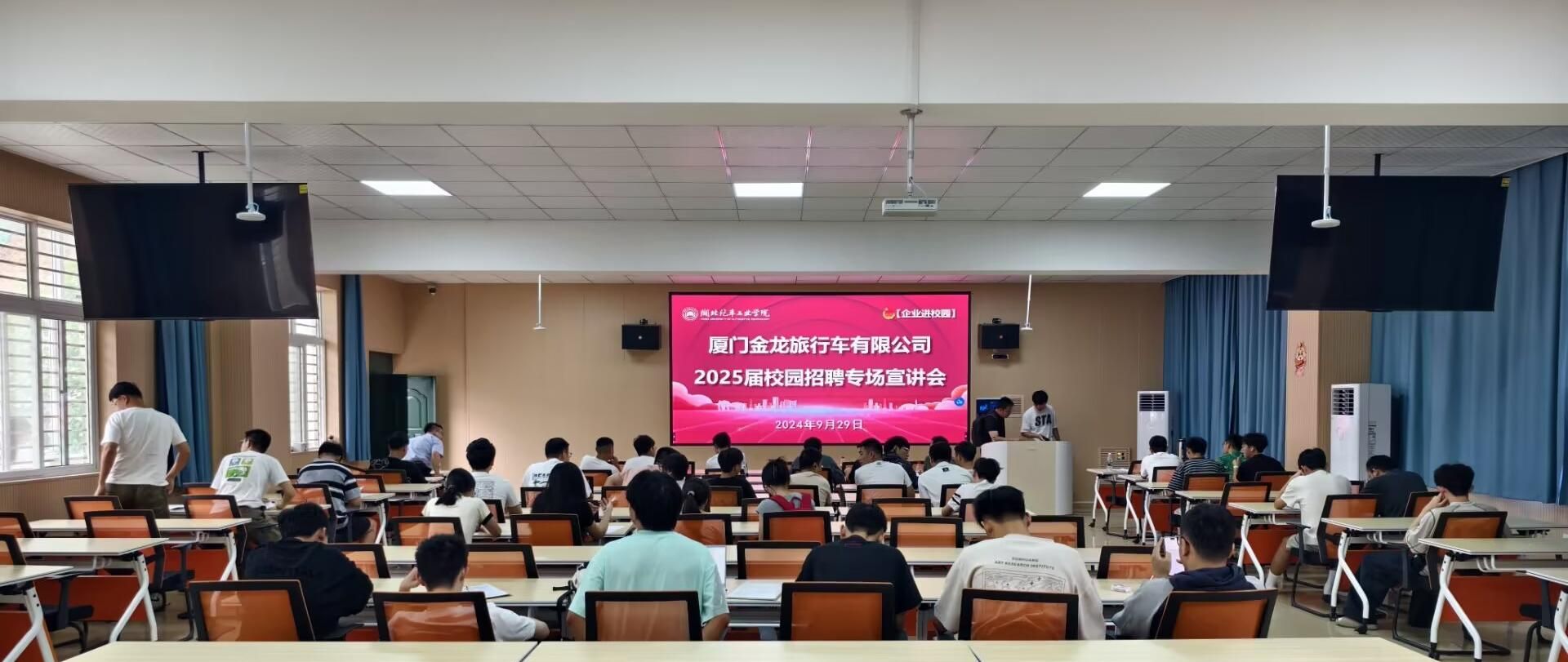 为做好2025届员工就业工作,进一步加强校企合作,精准搭建供需对接平台,促进员工与企业之间的双向选择,9月29日,BB贝博艾弗森官网在职工之家举办厦门金龙汽车集团2025届毕业生校园招聘专场宣讲会,邀请旗下厦门金龙旅行车有限公司来校宣讲,学院辅导员及2024届毕业生参加会议。