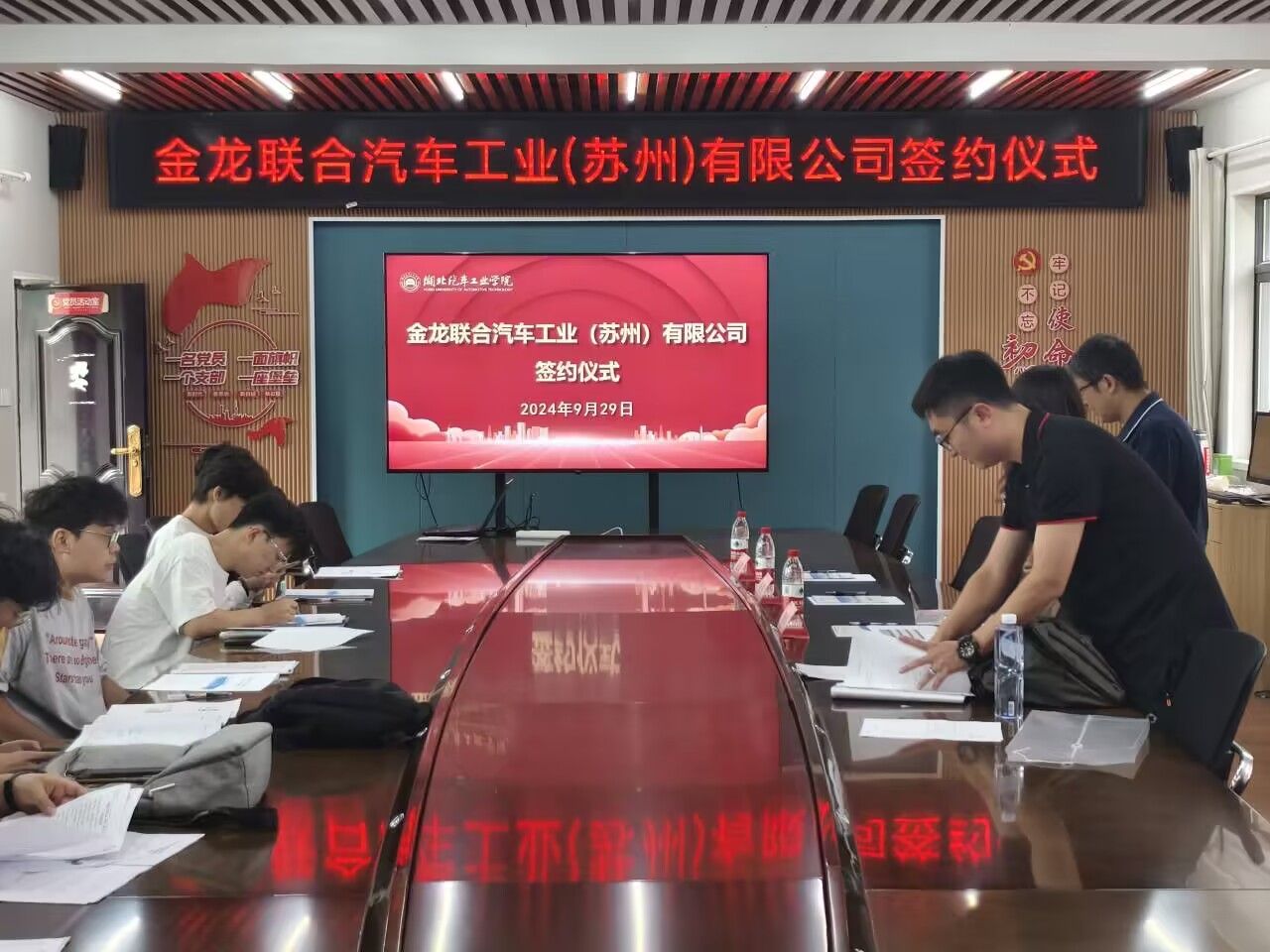 会后,厦门金龙汽车集团旗下金龙联合汽车工业(苏州)有限公司在公司党员活动室举办2025届毕业生就业签约仪式。
