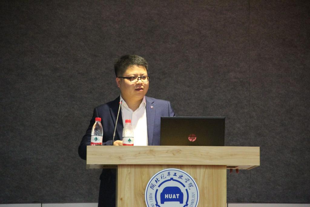 金龙招聘部经理周芃担任主讲人,他结合当前国内的就业形势和政策,对公司毕业生的就业情况做了简单的介绍和分析。随后通过视频宣传片对公司概况、企业文化、员工培养模式、企业的发展状况及前景等方面向员工们做了详细的介绍。他还结合近年来公司被录用学子在企业的优异表现对车辆工程专业的人才培养模式表达了高度的肯定。期间,他特意展示了一段由公司16级毕业生入职后亲自策划录制并配音完成的企业青春宣传片,精彩的画面、专业的剪辑赢得现场一片热烈掌声。他说到,“此次宣讲会除了介绍企业的概括、招聘岗位、用人标准等,还希望宣扬金龙公司的文化和精神。汽院是我们公司的优质合作单位,此次招聘首站就是汽院,这里有我们所需要的综合能力强、技术本领硬、才艺丰富多彩的青年人才!期待更多的有志之士加入金龙!”