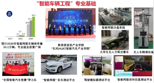 依托东风汽车公司等湖北省优势汽车产业集群,在前期多年沉淀的基础上,开设“智能车辆工程”新专业(未来汽车产业发展急需),专业特色包括: