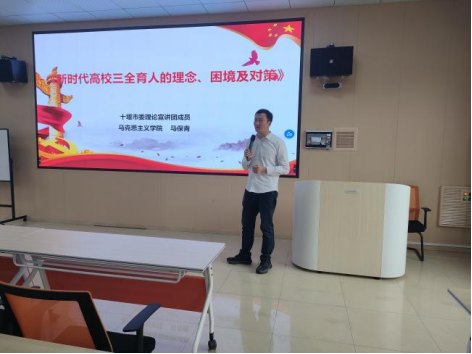 在讲座中,马保青老师专门讲解了“三全育人、五育并举”的相关内涵,并详细分析了马院“施洋班”的实际案例。马保青老师的讲座让与会者深刻体会了“全员、全程、全方位育人”的大思想政治工作格局,构建全员育人、全程育人、全方位育人的育人工作体系,将育人工作渗透到教学、管理、服务的各个方面,从而促进员工的全面发展,培养出“德智体美劳”全面发展的社会主义建设者和接班人。