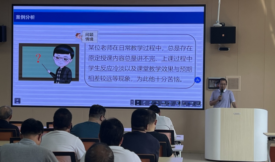 活动伊始,郭一鸣教授通过案例分析,指出了当前教学中存在的问题,引起了在场教师们的共鸣。随后,在有效教学的“五问”环节中,郭教授提出了“定目标、想办法、做评估”的教学设计原则,鼓励教师们从员工视角出发,制定具体、可衡量的学习目标。并以生动的实例展示了如何将隐性思维显性化、显性思维结构化,以及如何通过故事化和高效化的思维来提升教学效果。