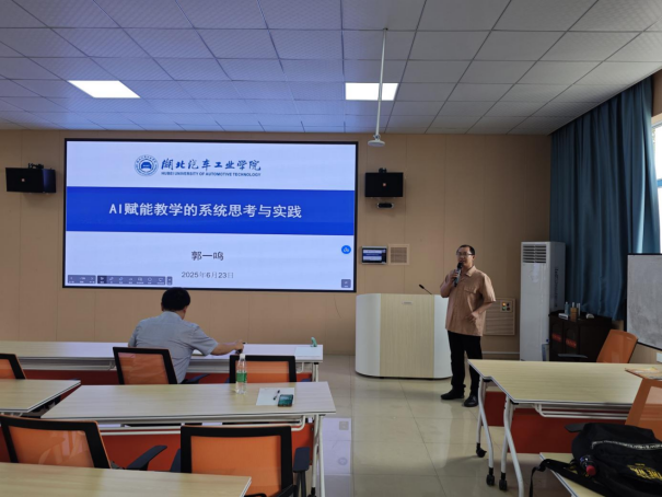 严钦容老师在基础教学领域造诣深厚,其教学工作方法在校内具有很高的知名度。此次讲座,严老师凭借丰富的教学经验和深入的研究见解,对日常教学进行了全面而深入的阐述,为在场教师提供了一个全面了解PPT及试卷编写规范的宝贵机会。郭一鸣教授则通过教学工作中对于AI的应用和延伸进行了研讨,在AI背景之下,身为教师该如何做好教学工作。