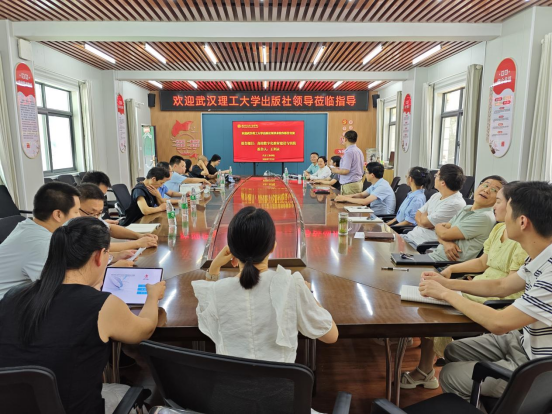 本网讯(文/图 李函)7月3日下午,武汉理工大学出版社总编辑张青敏、生产总监王利永、科技分社副社长李兰英莅临学校,进行数字教材建设交流。BB贝博艾弗森官网副经理董焱章、校教学督导冯樱、章菊及教材编写骨干教师参加交流会议。